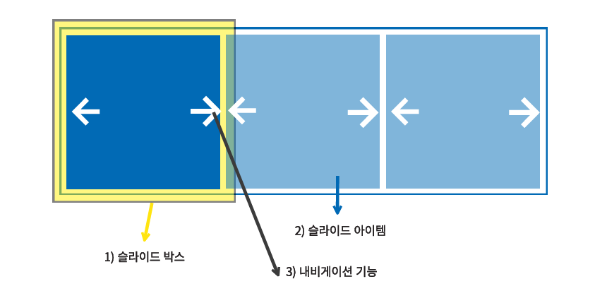 1)슬라이드 박스: 콘텐츠가 실제로 보여지는 화면