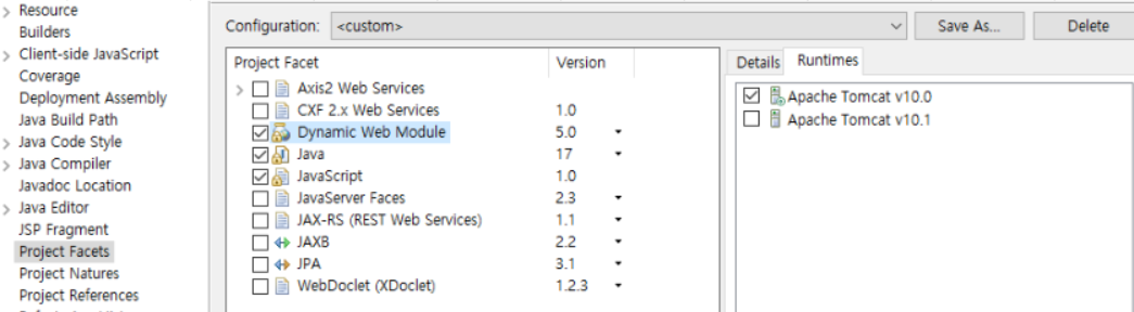 | Step2 | 프로젝트 설정 항목 선택하기 | Project Facets 선택 | ||
