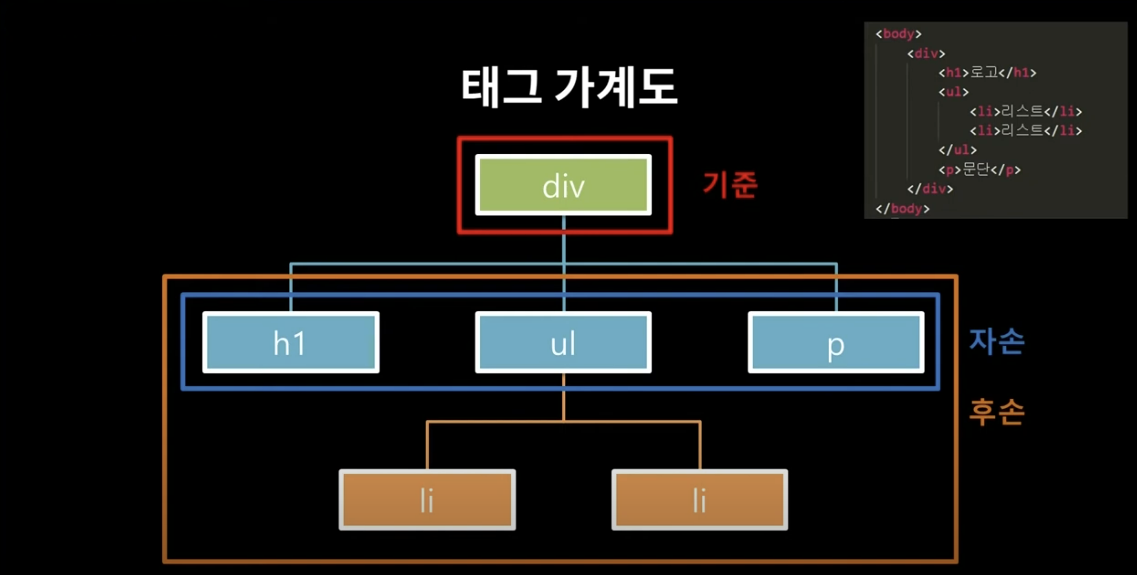 | 자손 선택자 | 선택자A >선택자B | 부모 선택자A의 직계 자손인 선택자B를 선택 |