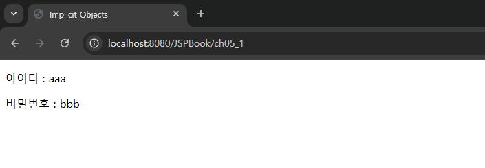 http://localhost:8080/JSPBook/ch05-1?id=aaa&password=bbb