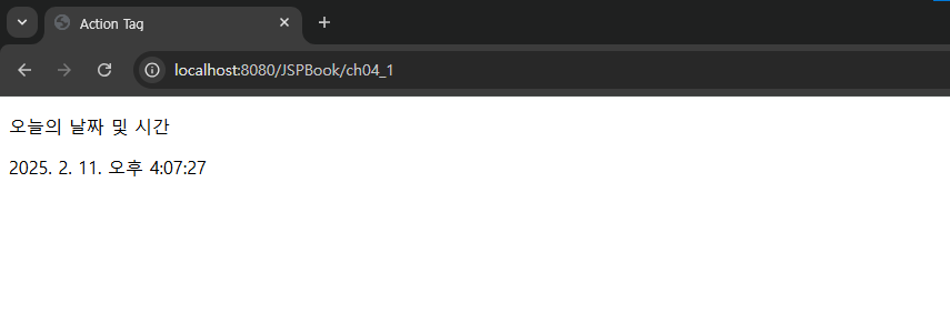 pageEncoding="UTF-8"%> <%@ page import="java.util.Date" %> <!DOCTYPE html> <html> <head> <meta charset="UTF-8"> <title>Welcome</title> <script src=" " crossorigin="anonymous"></script> <link href="https://cdn.jsdelivr.net/npm/bootstrap@5.3.3/dist/css/bootstrap.min.css" rel="stylesheet"> </head> <body> <%! String greeting = "도서 쇼핑몰에 오신 것을 환영합니다"; String tagline = "Welcome to Web Market!"; %> <div class="container py-4"> <%@ include file="menu.jsp" %> <div class="p-5 mb-4 bg-body-tertiary rounded-3"> <div class="container-fluid py-5"> <h1 class="display-5 fw-bold"><%= greeting %></h1> <p class="col-md-8 fs-4">BookMarket</p> </div> </div> <div class="row align-items-md-stretch text-center"> <div class="col-md-12"> <div class="h-100 p-5"> <h3><%= tagline %></h3> -------------------------- 추가 ------------------------------- response.setIntHeader("Refresh", 5); Date day=new java.util.Date(); String am_pm; int hour=day.getHours(); int minute=day.getMinutes(); int second=day.getSeconds(); if(hour / 12==0){ am_pm="AM"; }else{ am_pm="PM"; hour=hour - 12; } String CT=hour + ":" + minute + ":" + second + " " + am_pm; out.println("현재 접속 시각: " + CT + "\n"); %> </div> </div> </div> <%@ include file="footer.jsp" %> </div> </body> </html> |