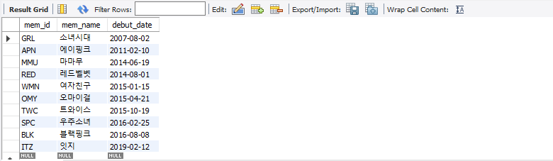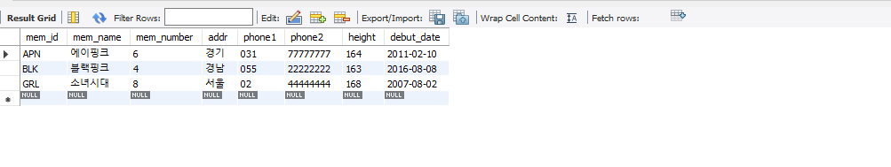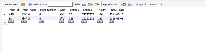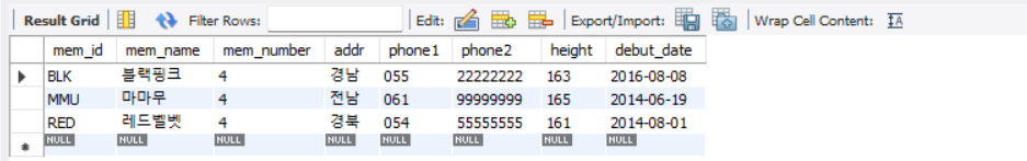 | select * from member where mem_name= '블랙핑크'; |